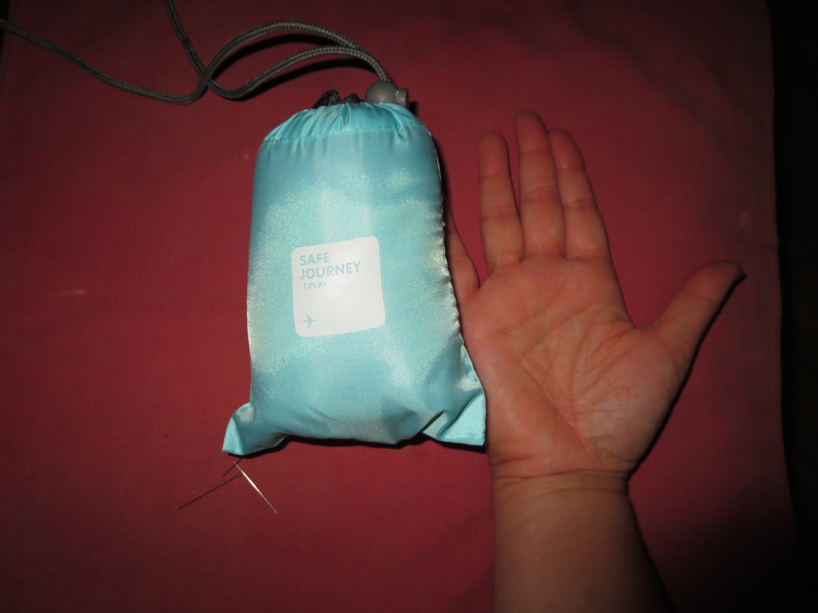 Je viens d’essayer de le rouler au maximum pour optimiser le rangement et il rentre dans l’une de mes petites pochettes et ne pèse presque rien (au moins deux fois moins que les 350g annoncés sur la pochette de mon sac à viande déjà acheté)