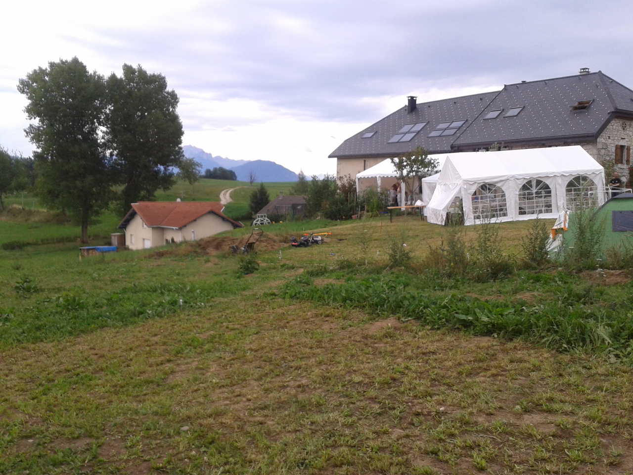 Bon finalement pour une tente qui n’est pas sortie de sa housse depuis 25 ans, elle est en parfait état et ne surtout ne parait pas si vieille que ça… on aurait dit une tente toute neuve, en tout cas elle n’a pas dépareillée parmi les 15 tentes qui s’étaient montées dans le champs juste à coté de la maison.
