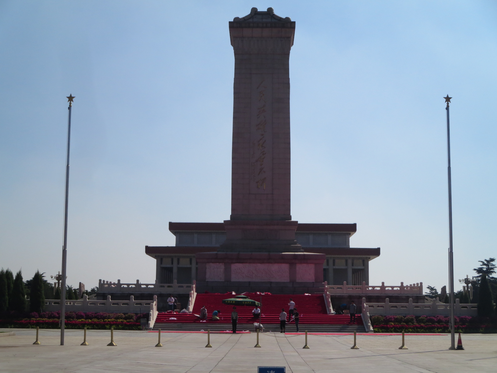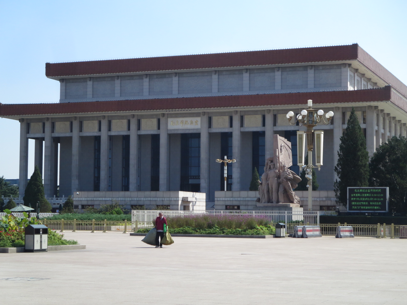 Jour 4 : Je n’ai pas suivi Claire et suis restée me reposer un peu avant de partir à pied vers la place Tiān’ānmén. Arrivée sur place, quelle ne fut pas ma surprise de découvrir que pour marcher sur la place il fallait passer un contrôle de sécurité (comme pour prendre le métro) où l’on dépose son sac sur un tapis roulant comme lorsque l’on est à l’aéroport. En fait, les routes sont tellement larges que bien souvent il y a des barrières un peu partout pour éviter qu’on puisse traverser, ce qui nous oblige à prendre des passages souterrains et à bien prévoir le trottoir sur lequel on marche.