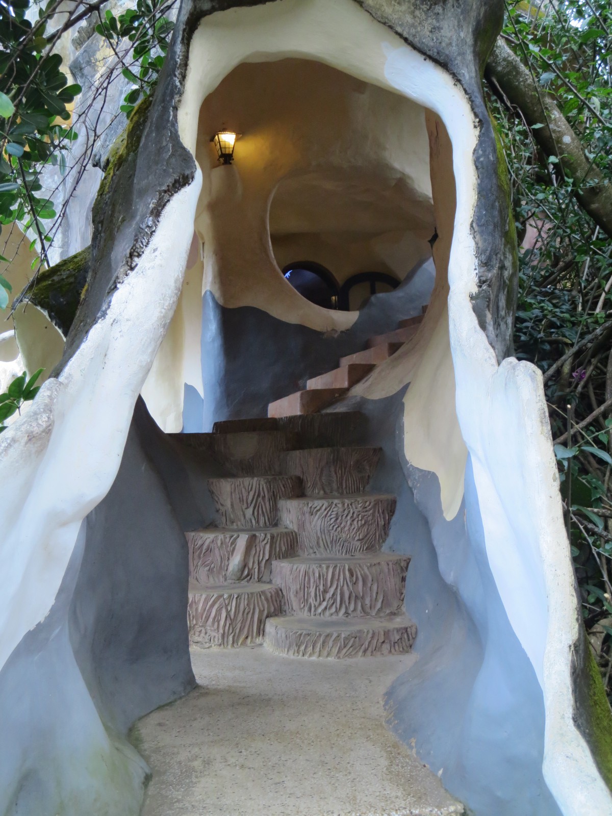 Cette demeure privée ne peut se décrire en quelques mots. Il s’agit d’une sorte de délire artistique en béton, dont les pièces aux formes organiques, reliées par d’étroites passerelles, évoquent un peu l’architecture d’Antoni Gaudí.