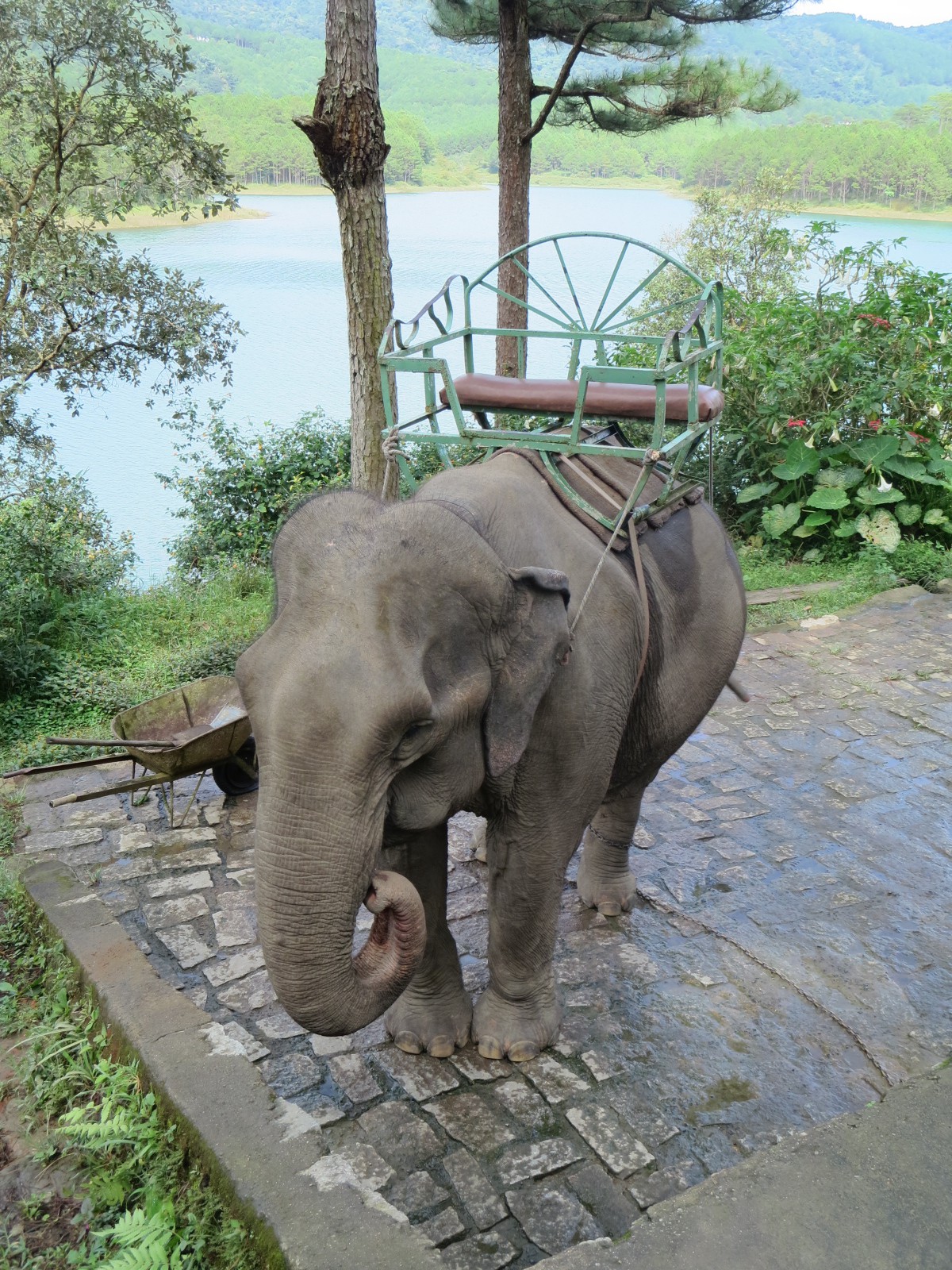 Après cette visite, petit tour du lac Tuyem Lam pour tomber sur un endroit très aménagé pour le tourisme mais, ce jour là complètement désert, avec comme surprise de tomber sur un éléphant, qui se tenait là tout seul au milieu de nulle part.