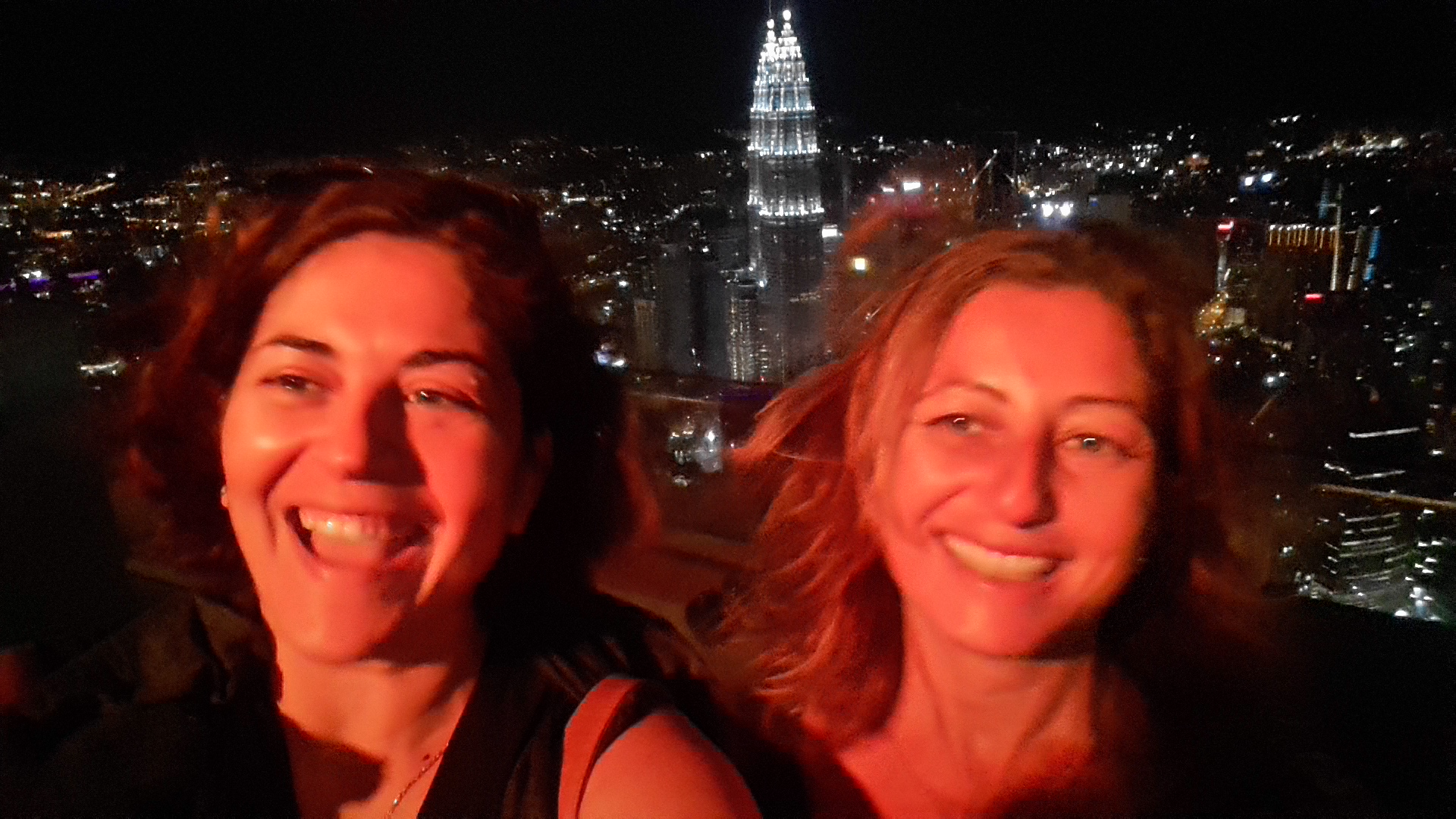 Dès le premier soir nous sommes allées dîner tout en haut de la tour Kuala Lumpur ( alors pendant 2 jours je pensais qu’elle s’appelait la tour Menara, jusqu’à ce que je comprenne que Menara signifiait tour en malais) avec un petit arrêt sur le roof top en plein air et une vue imprenable à 360° : vraiment magnifique !