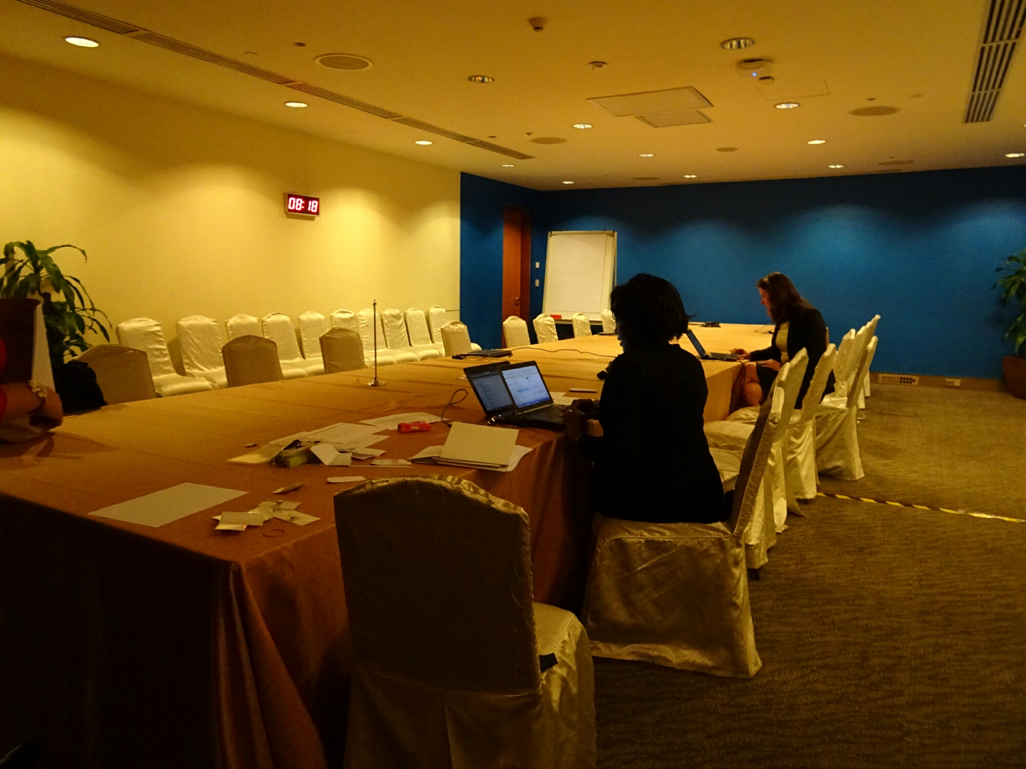 Le soir, je l’accompagne dans le KLCC (Kuala Lumpur Convention Centre) car l’équipe voulait voir la salle et préparer l’organisation des fournitures, mais je me suis retrouvée dans une salle de réunion à assister à un meeting préparatoire.