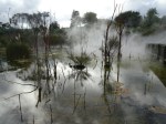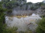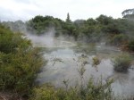 Après cette rando, nous voilà partis en direction de Rotorua, la ville connue pour son activité géothermique. On y trouve de nombreux geysers, notamment le Pohutu à Whakarewarewa et des mares de boue chaude dans la ville même dues à la caldeira de Rotorua. Une forte odeur de soufre est d’ailleurs reconnaissable dans la ville par intermittence ; et ce qui est drôle c’est que ça fume dans toute la ville.