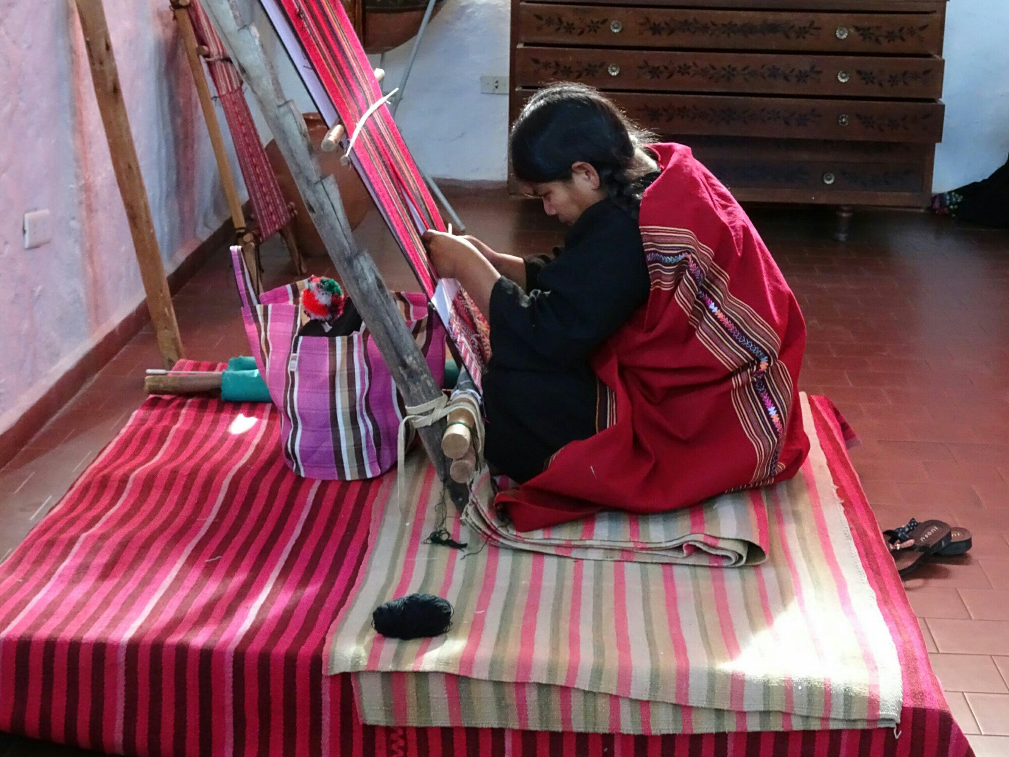 Also its textile museum and I must admit that, here for weaving, they are far less organized than in Laos since here, they must count for each rank while in Laos they had predefined designs and they just had to get the right thread for  each row which is much faster. Here, it takes several weeks to complete a weaving work versus one day in Laos.