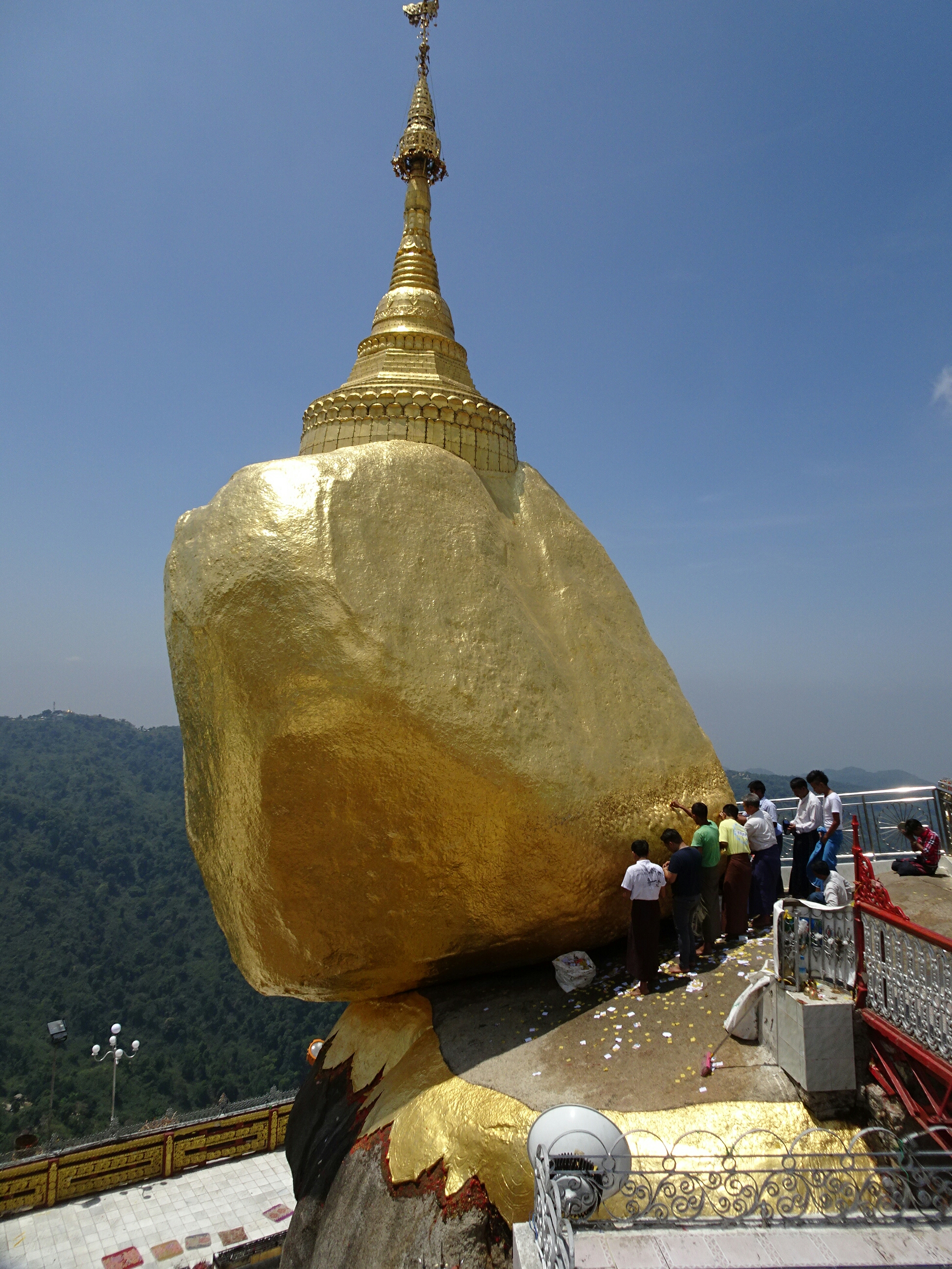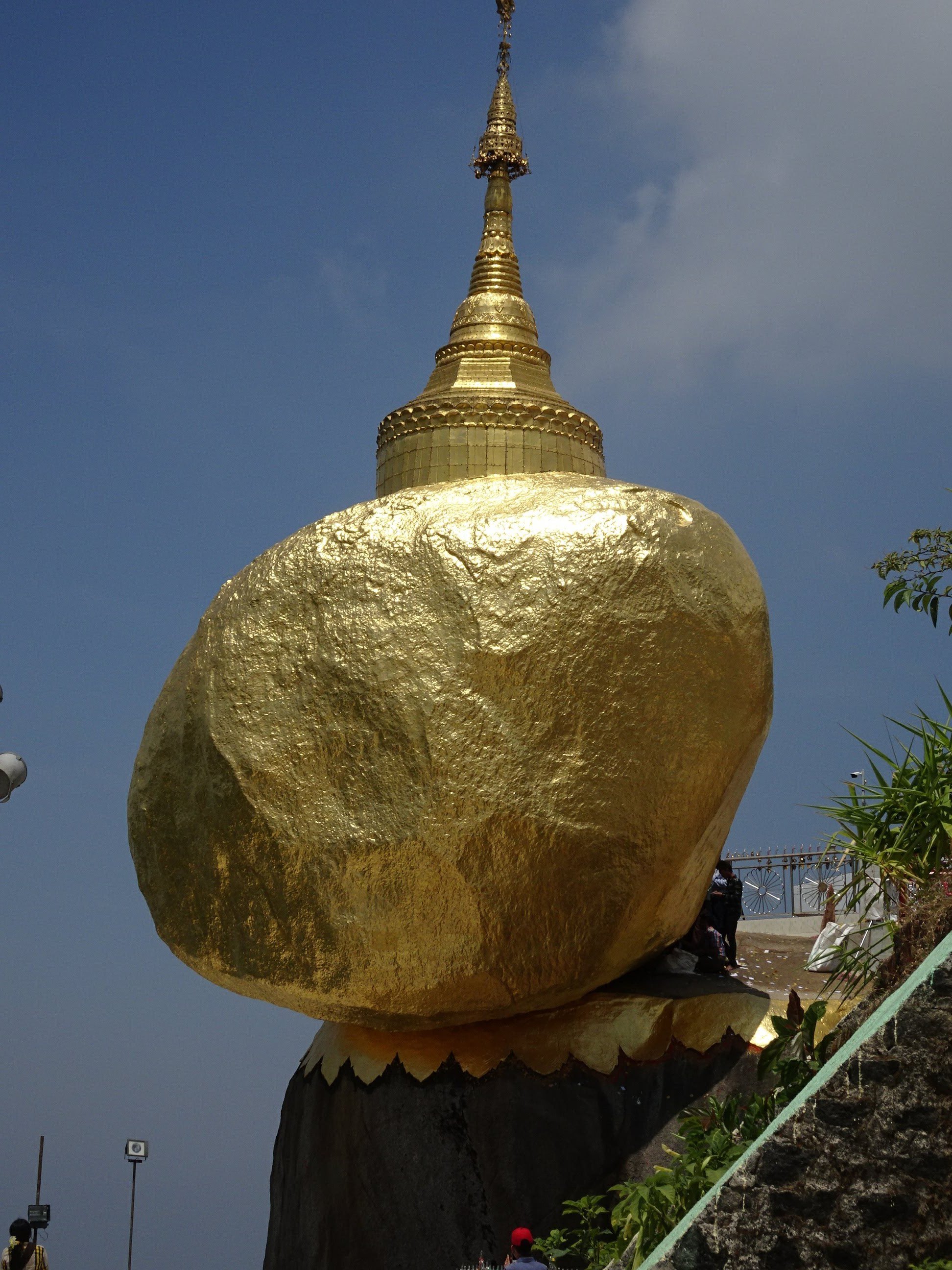 Cet énorme rocher couvert d’or, en équilibre au sommet d’une montagne, est un site majeur de pèlerinage pour les bouddhistes birmans.
