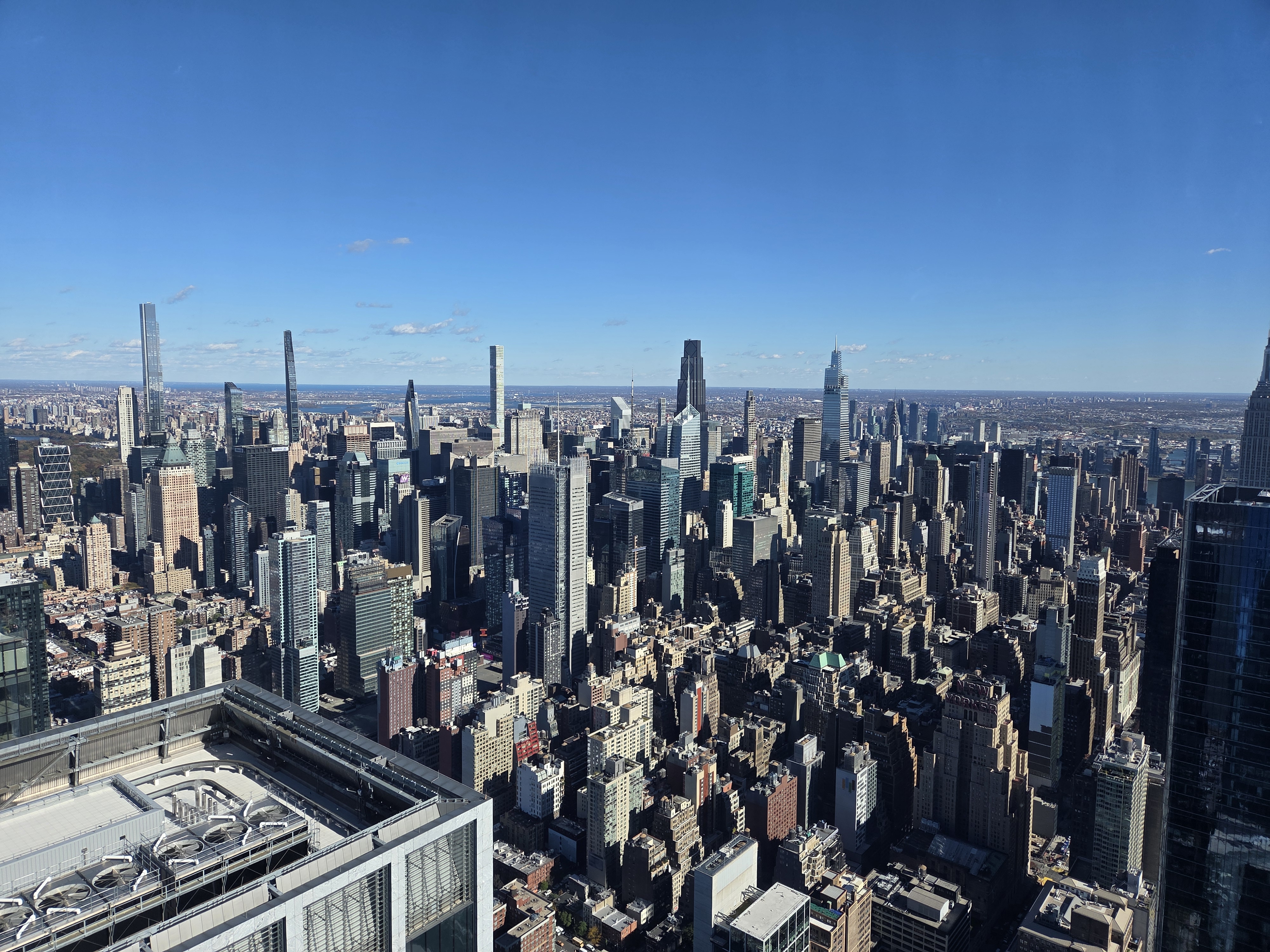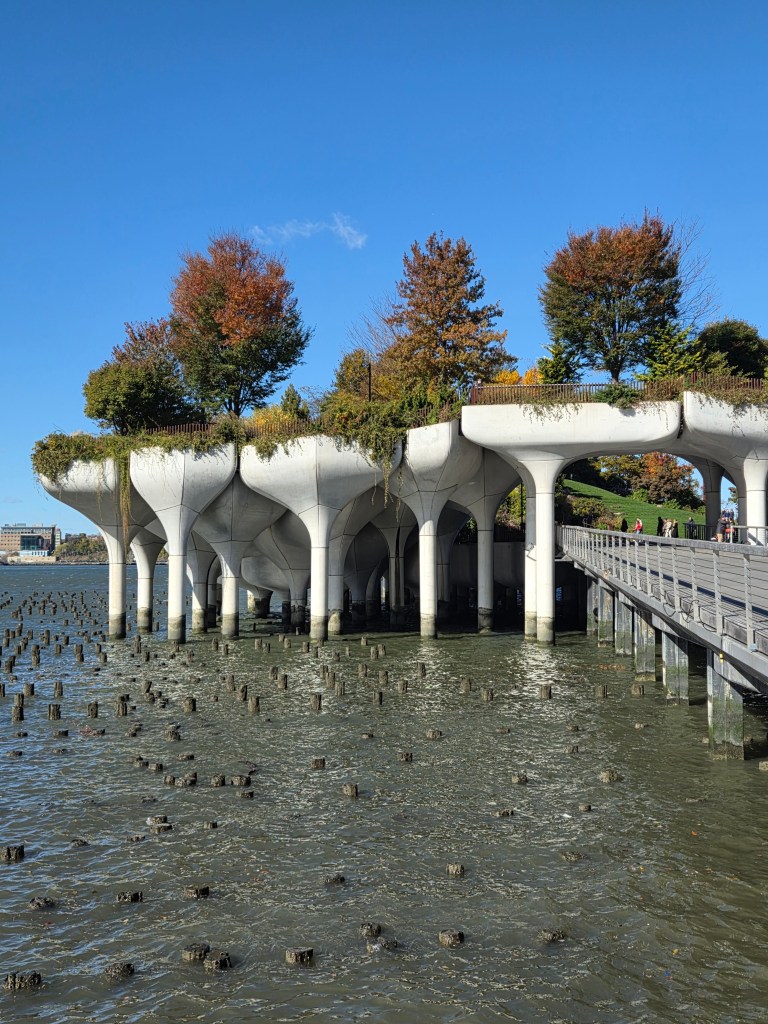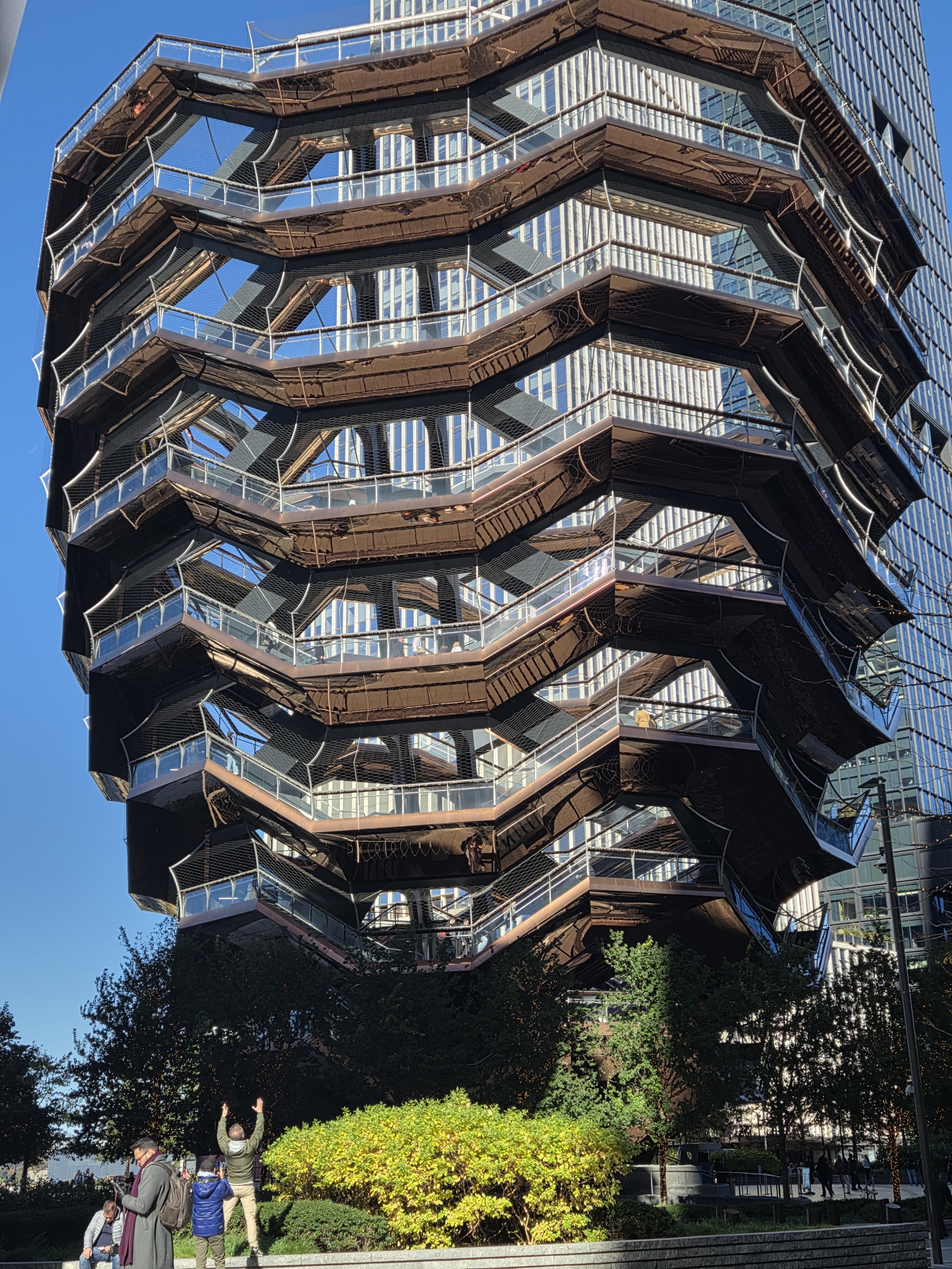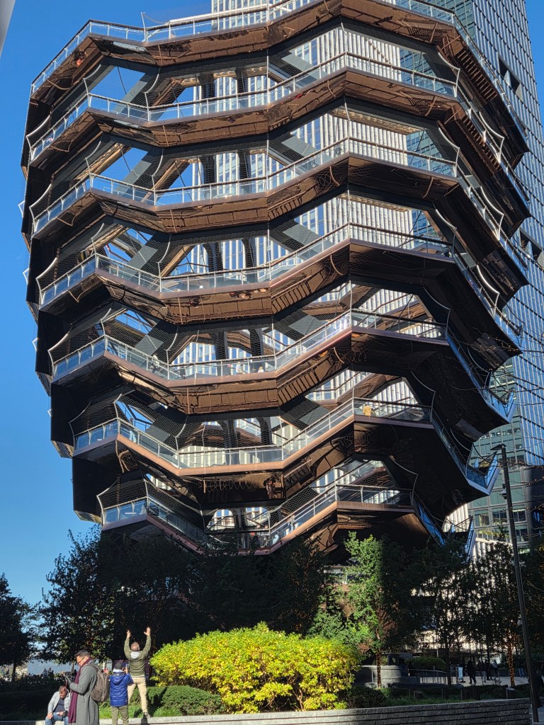 - Edge & Summit : Pour rejoindre l’Edge, j’ai choisi de partir à pied de Bleecker Street, j’ai traversé le front de mer en passant par Little Island, cette étonnante jetée flottante, puis par le marché alimentaire de Pier 57, avant d’emprunter la mythique High Line, cette ancienne voie ferrée aérienne transformée en parc. C’était une magnifique promenade qui nous a menés à Hudson Yards et à l’Edge, dont la plateforme d’observation extérieure offre une vue à couper le souffle. Pour la petite histoire, lors de ma dernière visite il y a huit ans, cette zone était encore entièrement en construction!
