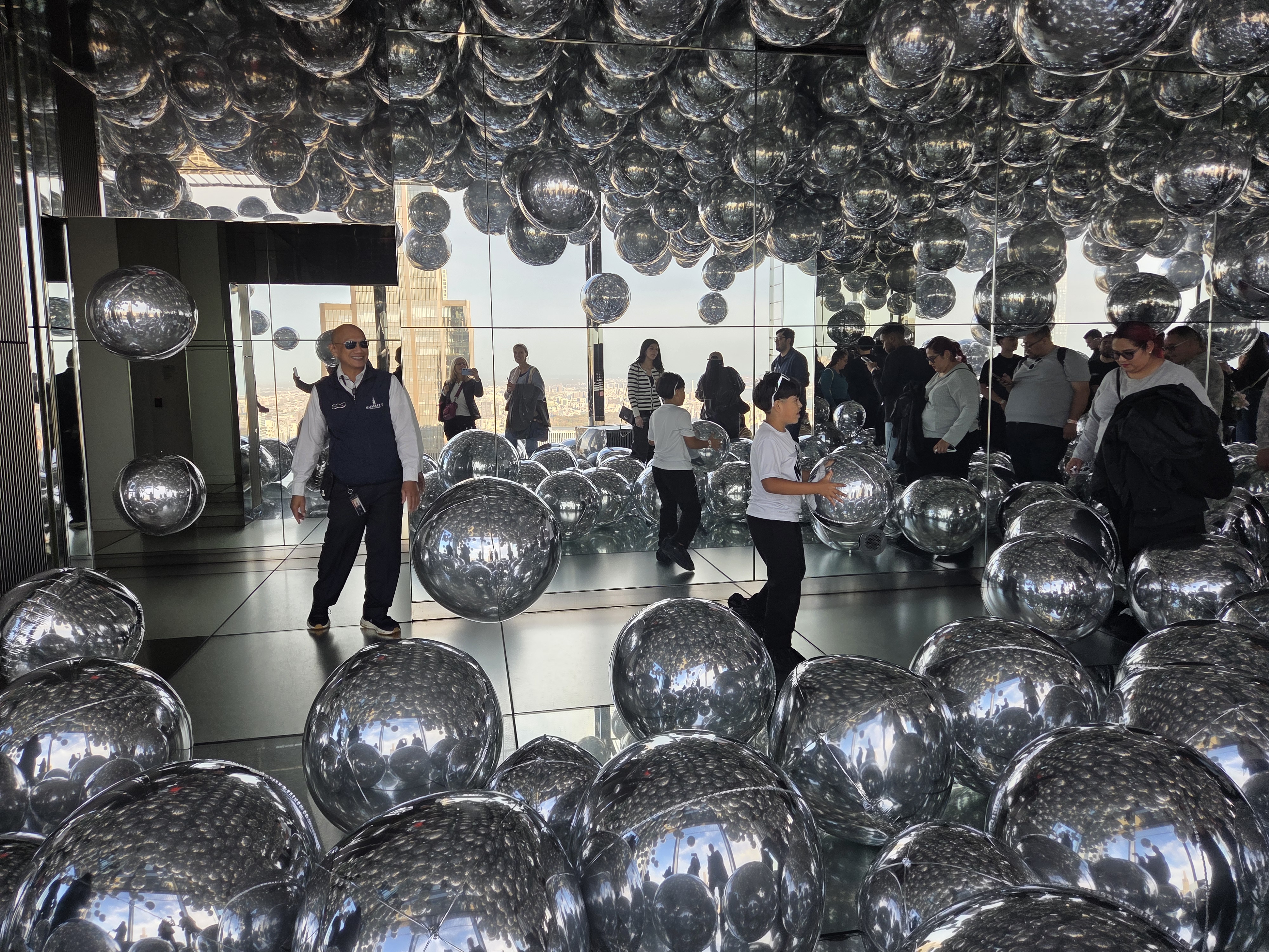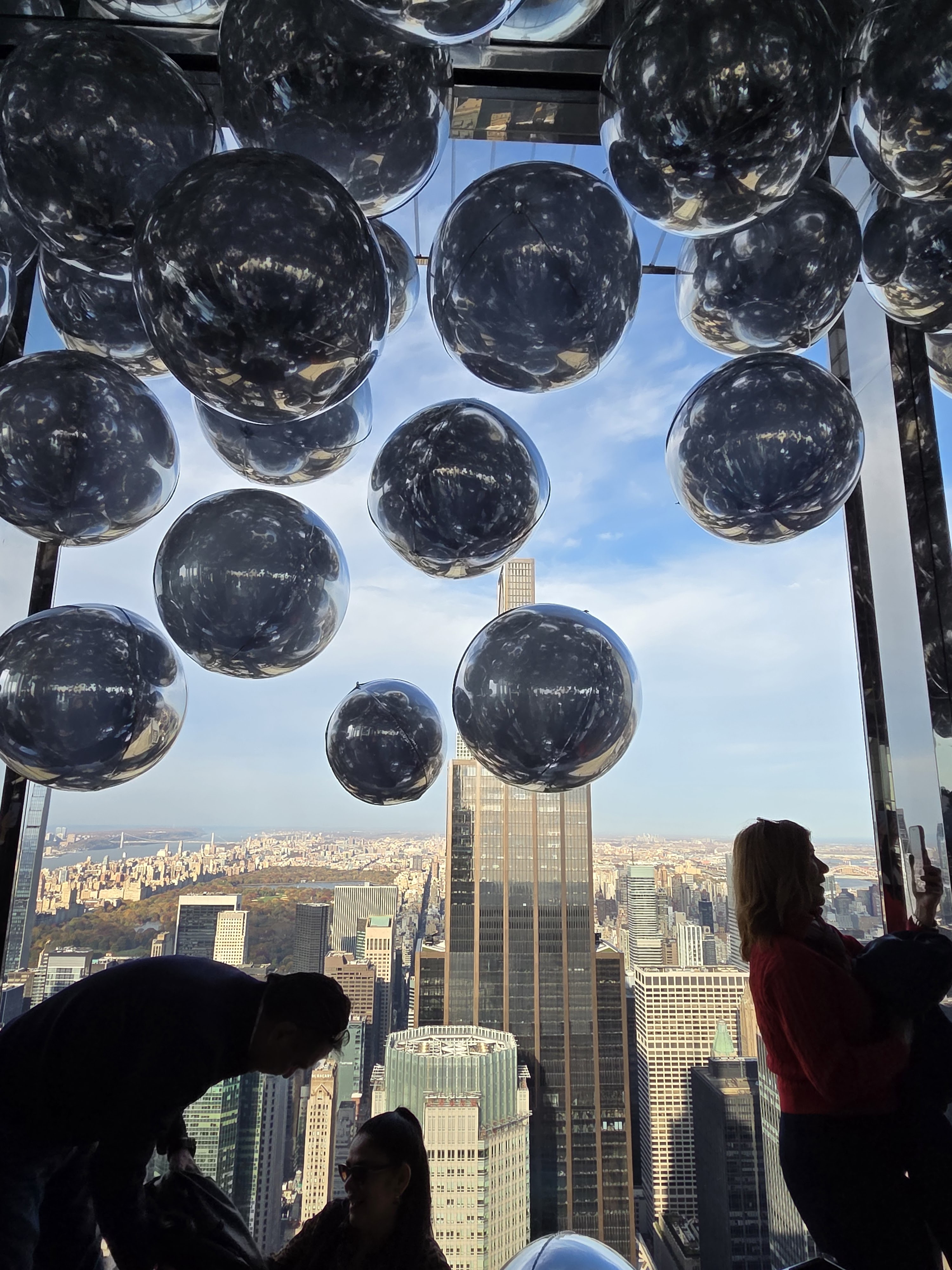 - Puis, le Summit One Vanderbilt : une expérience absolument exceptionnelle ! L’idée des miroirs qui démultiplient la vue de la ville à l’infini crée un espace immersif, presque irréel. Mais le clou du spectacle fut l’expérience au milieu des ballons argentés flottants. On se retrouve au milieu d’une centaine de sphères réfléchissantes qui accentuent la sensation de marcher dans les nuages. C’était sensationnel et ultra-ludique ! À faire absolument !