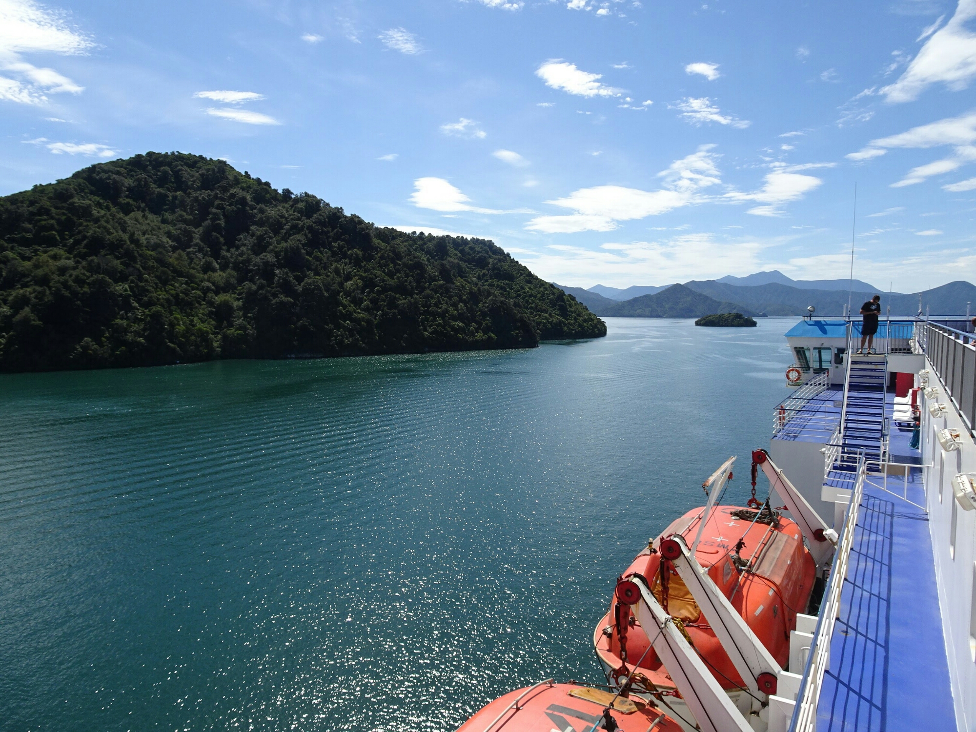 Après plus de deux semaines passées sur l’île du sud, nous voilà partis en direction de l’île du nord et nous allons prendre un ferry avec le camper Van.
