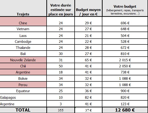 Voici une estimation de mon budget sur place pour l’année soit un total de 13 000€