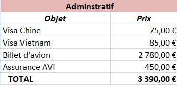 Au total mon budget avant départ est de 4929€ (dans la moyenne, puisque le budget avant départ est estimé à 5000€)