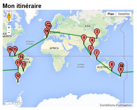 Pour l’instant j’ai sollicité l’agence ZIP WORD, mais je vais également faire une demande chez Travel Nation avec le parcours suivant