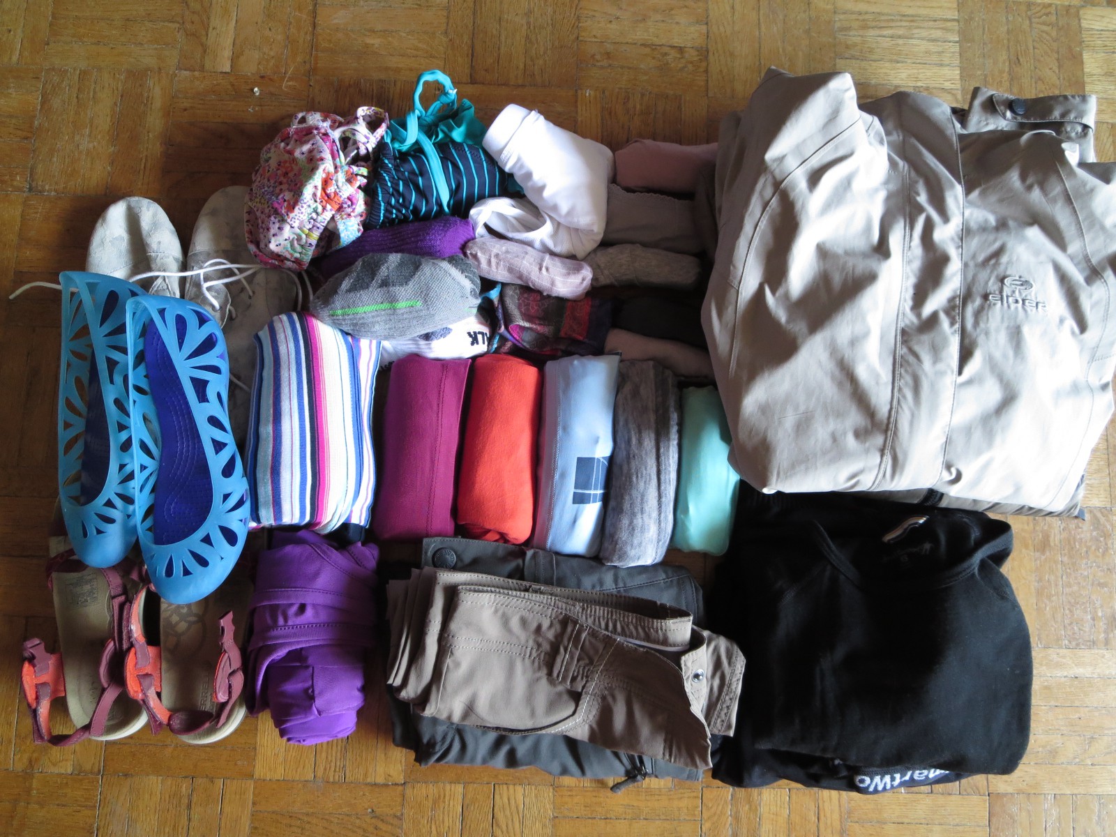 SI je peux me permettre de te donner un conseil, réfléchis à deux fois avant d’emmener des chaussures de rando. En pratique, je trouve que ce n’est pas franchement utile et qu’elles sont avantageusement remplaçables par les baskets classiques… qui sont beaucoup moins lourdes et qu’on peut porter plus facilement en ville.